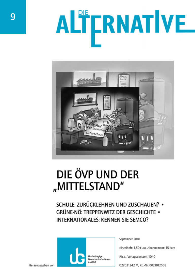 Agrarsektor und Verteilungsfragen (S. 12), Arbeiterkammer: Wettbewerbsbericht 2010 (S. 13), Post, Telekom: Auf- und abgetaucht (S. 16), Grüne-NÖ: Treppenwitz der Geschichte (S. 18), FSW: Ein Firmenkollektivvertrag entwickelt sich (S. 21), Sozialausbau statt Sozialabbau (S. 22), Schulreform: Zurücklehnen und zuschauen? (S. 24)